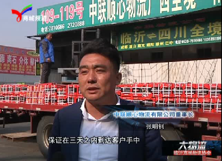 上物流城找好专线 近日,临沂电视台《大物流》栏目组对临沂中联顺心物流有限公司进行了采访,公司董事长张明钊接受了专访。